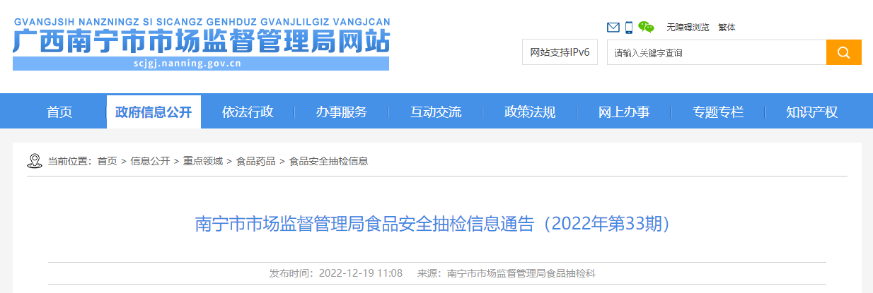 中國質(zhì)量新聞網(wǎng)訊 12月19日,南寧市市場監(jiān)督管理局網(wǎng)站發(fā)布2022年第33期食品安全抽檢信息。本期抽檢糧食加工品、食用油、油脂及其制品、調(diào)味品、乳制品、飲料、糕點、酒類、蔬菜制品、糖果制品、餐飲食品和食用農(nóng)產(chǎn)品等14大類食品共282批次。根據(jù)食品安全國家標準進行檢驗和判定,個別項目不合格,其產(chǎn)品即判定為不合格產(chǎn)品。