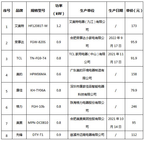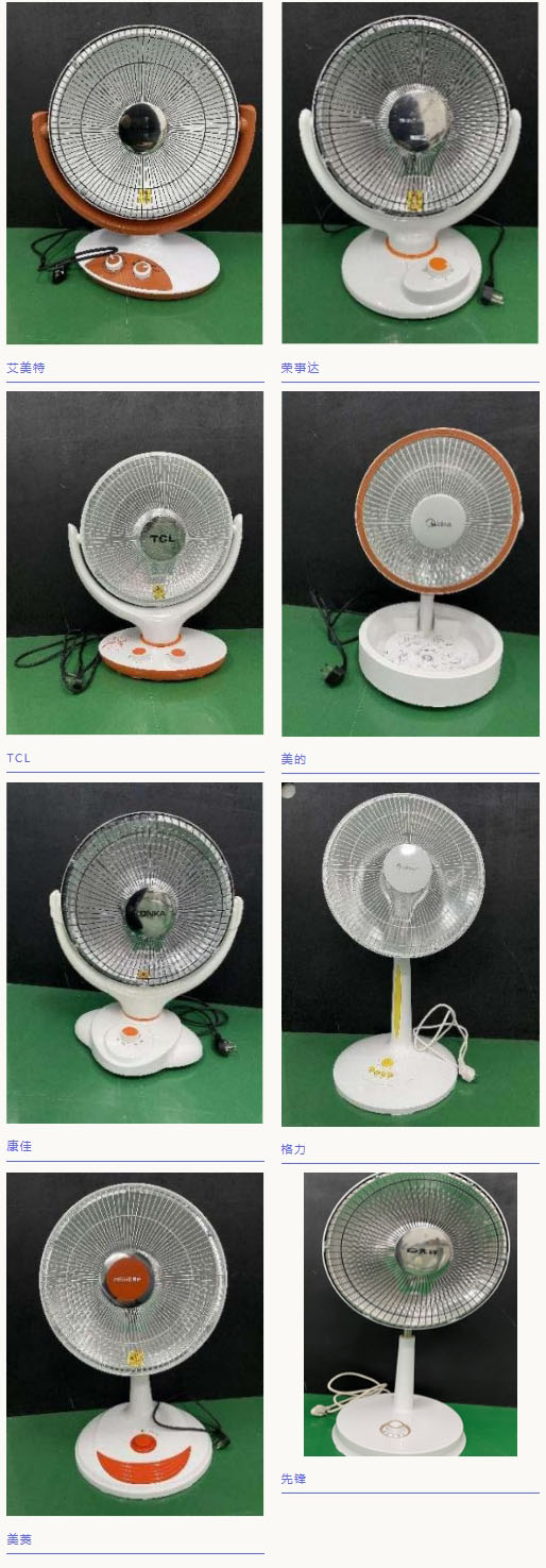 近期,浙江省消保委、金華市消保委、永康市消保委聯(lián)合開展了取暖器比較試驗,選取了康佳、格力、艾美特、榮事達、先鋒、美菱、TCL、美的等八個知名品牌的較暢銷款式(產(chǎn)品見表1),比較試驗涵蓋了大家關心的安全指標、輻射均勻性、輻射熱距離等項目,我們看看各品牌的表現(xiàn)吧。