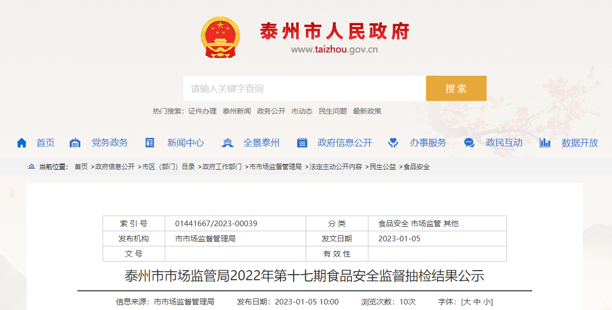 中國質(zhì)量新聞網(wǎng)訊 近日,江蘇省泰州市市場監(jiān)管局公示2022年第十七期食品安全監(jiān)督抽檢結(jié)果,涉及8批次特殊膳食食品監(jiān)督抽檢合格信息。