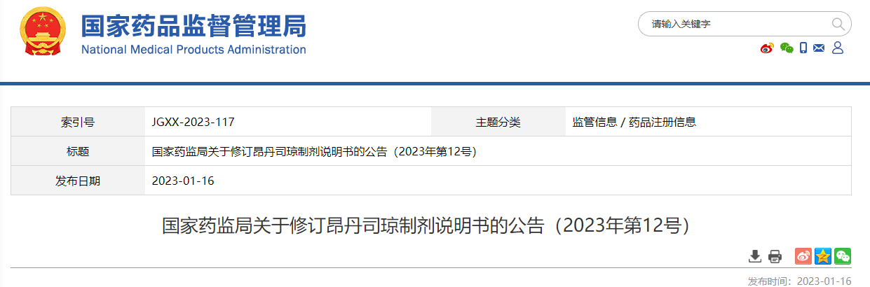 國家藥監(jiān)局關(guān)于修訂昂丹司瓊制劑說明書的公告(2023年第12號(hào))