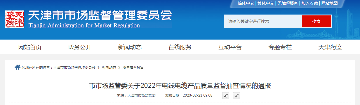 中國質(zhì)量新聞網(wǎng)訊 近日,天津市市場監(jiān)管委通報2022年電線電纜產(chǎn)品質(zhì)量監(jiān)督抽查情況。本次抽查電線電纜產(chǎn)品125批次,不合格產(chǎn)品24批次。其中4批次產(chǎn)品涉嫌假冒,已移轉(zhuǎn)至企業(yè)所在地市場監(jiān)管局處理。