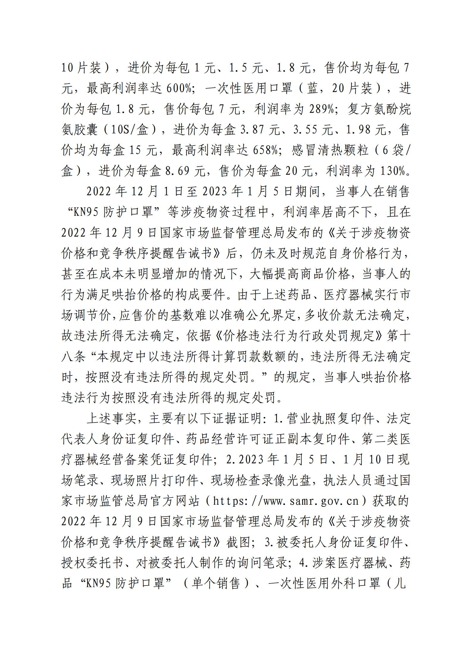 天津市同心安泰藥品銷售有限公司哄抬價(jià)格案(津辰市監(jiān)綜處罰〔2023〕5-1號(hào))