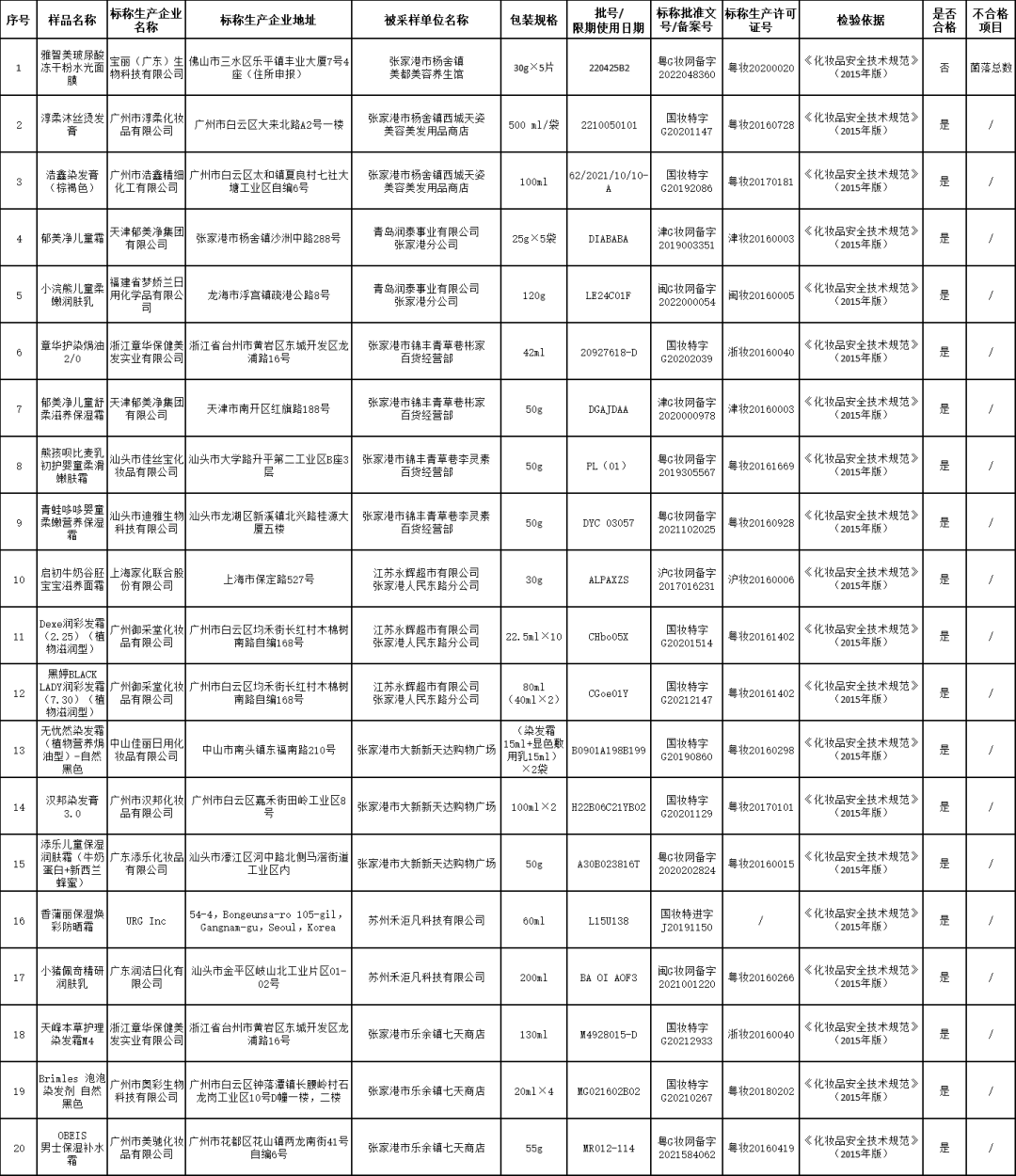 本次化妝品監(jiān)督抽檢重點(diǎn)圍繞染發(fā)劑、燙發(fā)劑、防曬霜等特殊化妝品和兒童潤膚乳、面霜等兒童護(hù)膚品,此外還涉及面膜、男士面霜等普通化妝品,總計20批次。經(jīng)蘇州市藥品檢驗檢測研究中心檢驗,1批次不合格,為實(shí)際生產(chǎn)企業(yè)為寶麗(廣東)生物科技有限公司生產(chǎn)的雅智美玻尿酸凍干粉水光面膜產(chǎn)品,不合格項目為菌落總數(shù)超標(biāo)。按照《化妝品安全技術(shù)規(guī)范》規(guī)定,一般化妝品的菌落總數(shù)限值為≤1000,而此次不合格產(chǎn)品被檢出3.3×103FU/ml,也就是限值的3.3倍。