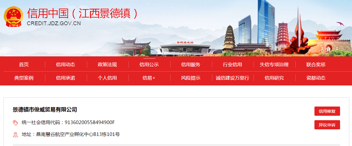 | 處罰內(nèi)容: | 責令景德鎮(zhèn)市俊威貿(mào)易有限公司停產(chǎn)停業(yè) |