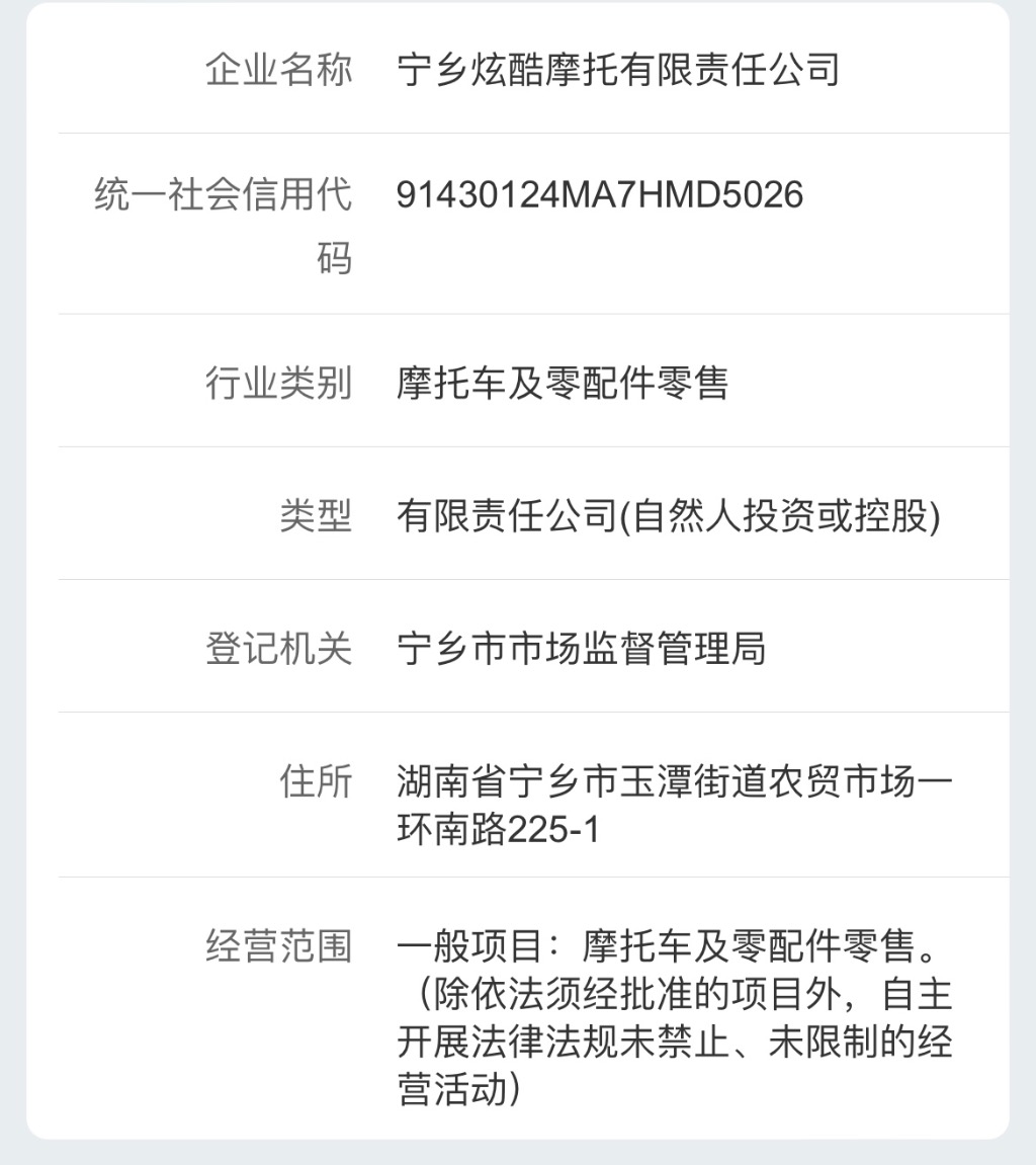 企業(yè)名稱:寧鄉(xiāng)炫酷摩托有限責(zé)任公司