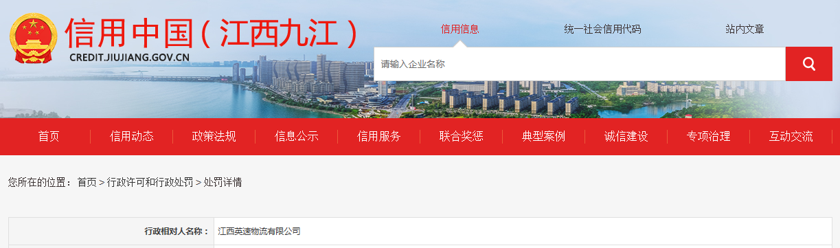 | 行政相對人名稱: | 江西英速物流有限公司 |