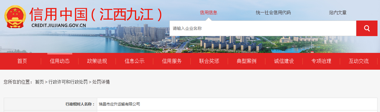 | 行政相對(duì)人名稱: | 瑞昌市應(yīng)升運(yùn)輸有限公司 |