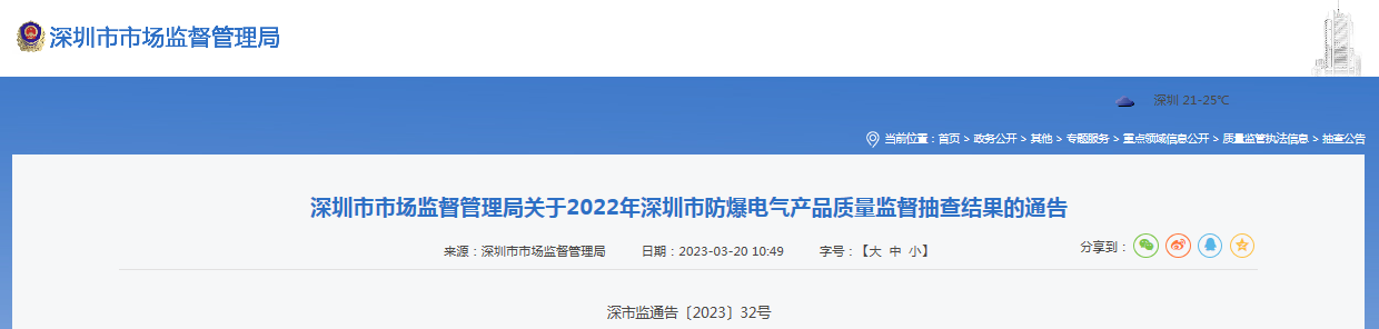 | 2022年深圳市防爆電氣產(chǎn)品質(zhì)量監(jiān)督抽查發(fā)現(xiàn)不合格項(xiàng)目產(chǎn)品及企業(yè)名單 | ||||||||||
