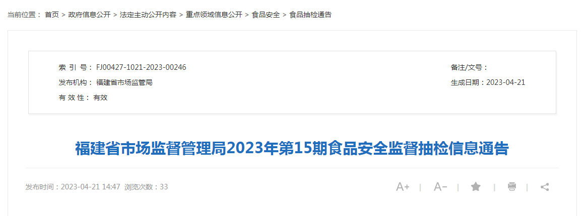 針對抽檢不合格產(chǎn)品,福建省市場監(jiān)督管理局已要求所在地市場監(jiān)管部門對不合格產(chǎn)品生產(chǎn)經(jīng)營者開展調(diào)查處置,依法查處違法違規(guī)行為,督促生產(chǎn)經(jīng)營者履行停止銷售、下架、召回和公告等法定義務(wù),有效防控食品安全風險。