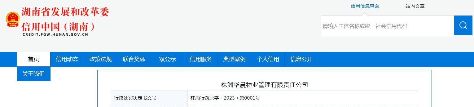 中國質(zhì)量新聞網(wǎng)訊 據(jù)信用中國(湖南)網(wǎng)站消息,近日,湖南省株洲市消防救援支隊對株洲華晨物業(yè)管理有限責任公司作出行政處罰。行政處罰決定書文號:株消行罰決字﹝2023﹞第0001號。
