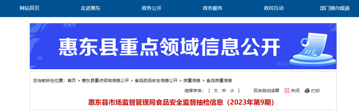 中國質(zhì)量新聞網(wǎng)訊 近日,廣東省惠東縣市場監(jiān)管局發(fā)布2023年第9期食品安全監(jiān)督抽檢信息。本期為快檢不合格跟蹤專項(xiàng)抽檢監(jiān)督。共抽檢18批,合格18批,不合格0批。