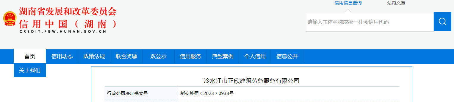 中國質(zhì)量新聞網(wǎng)訊 據(jù)信用中國(湖南)網(wǎng)站消息,近日,湖南省婁底市新化縣交通運輸局對冷水江市正欣建筑勞務服務有限公司作出行政處罰。行政處罰決定書文號:新交處罰﹝2023﹞0933號。
