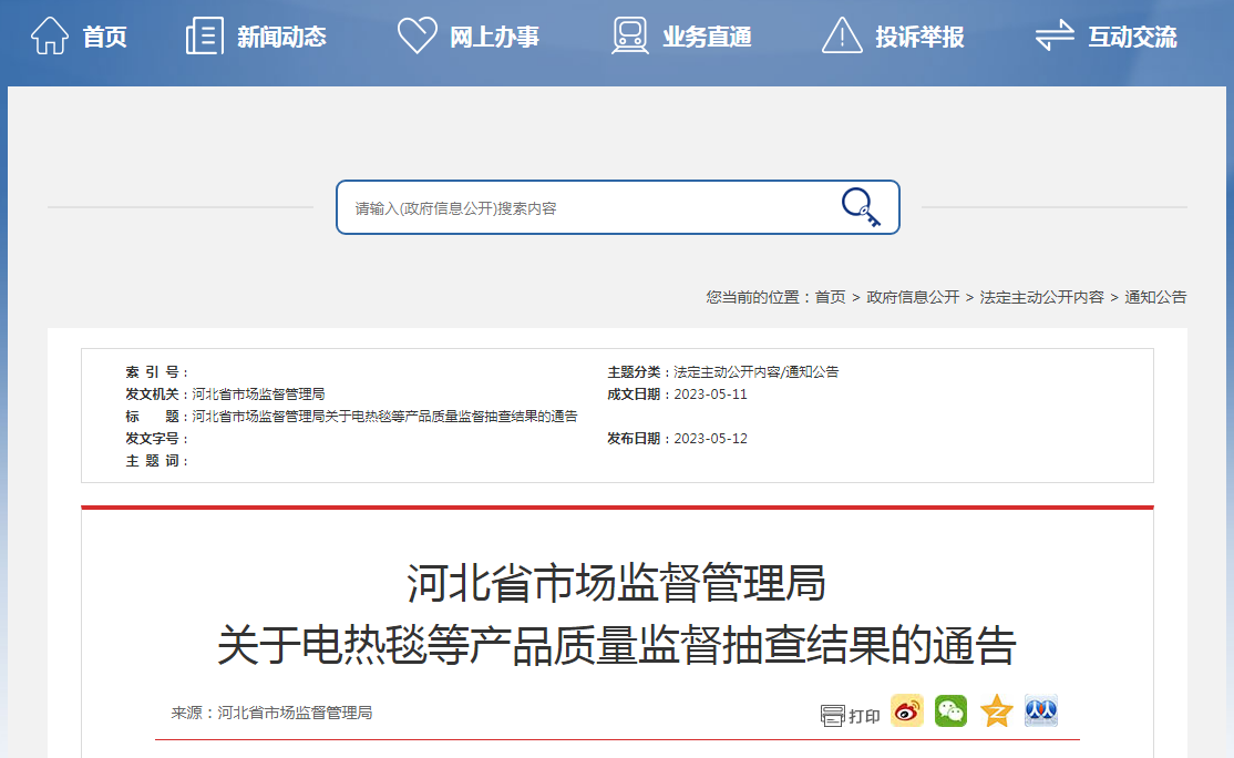 其中,組織抽查電熱毯產(chǎn)品,檢出不合格樣品9批次。