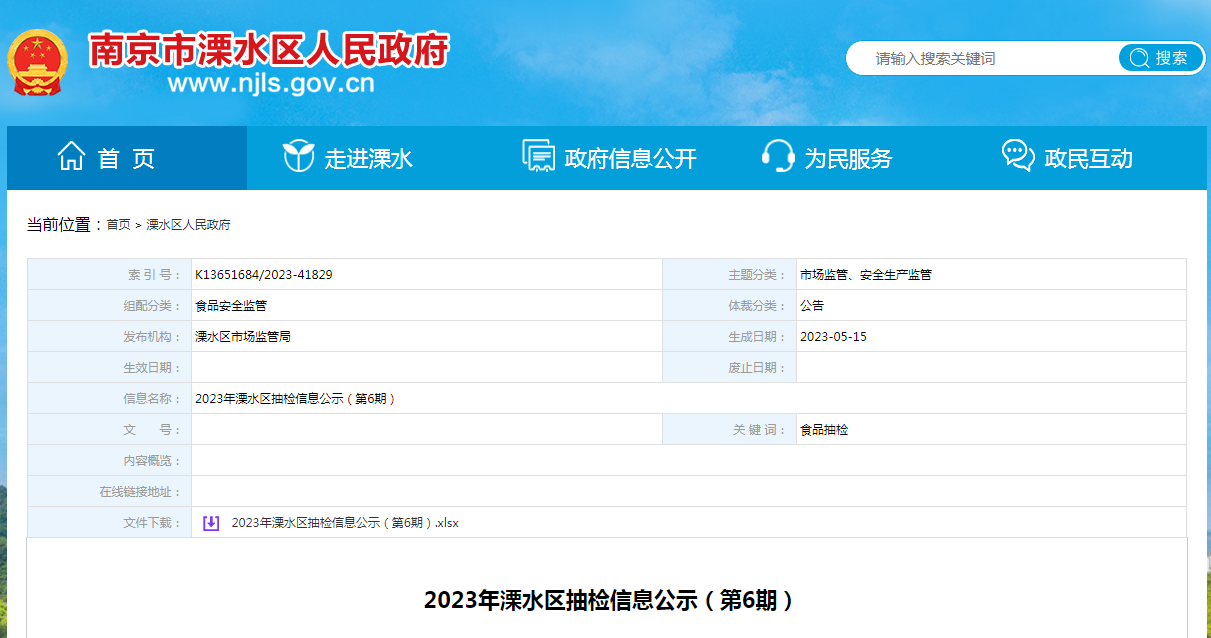 | 溧水區(qū)抽檢信息匯總表 | |||||