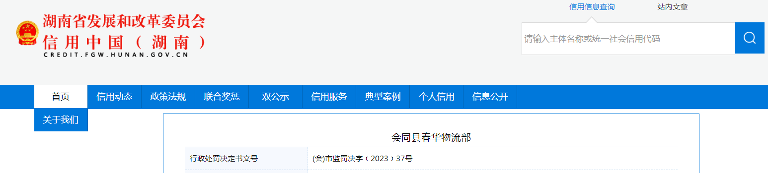 中國質(zhì)量新聞網(wǎng)訊 據(jù)信用中國(湖南)網(wǎng)站消息,近日,湖南省會同縣市場監(jiān)管局對會同縣春華物流部作出行政處罰。行政處罰決定書文號:(會)市監(jiān)罰決字﹝2023﹞37號。