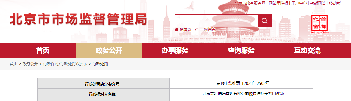 | 行政相對人名稱 | 北京宸軒醫(yī)院管理有限公司悅慕醫(yī)療美容門診部 | |