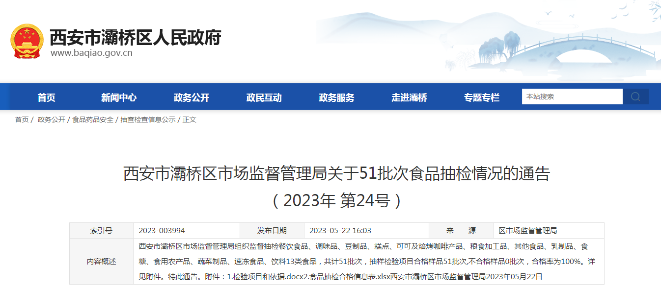 中國質(zhì)量新聞網(wǎng)訊 5月22日,西安市灞橋區(qū)市場監(jiān)督管理局發(fā)布關(guān)于51批次食品抽檢情況的通告(2023年第24號)。