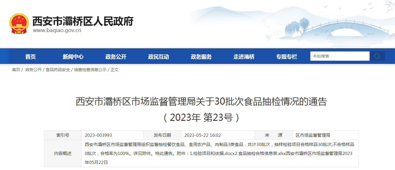 中國質(zhì)量新聞網(wǎng)訊 5月22日,西安市灞橋區(qū)市場(chǎng)監(jiān)督管理局發(fā)布關(guān)于30批次食品抽檢情況的通告(2023年第23號(hào))。