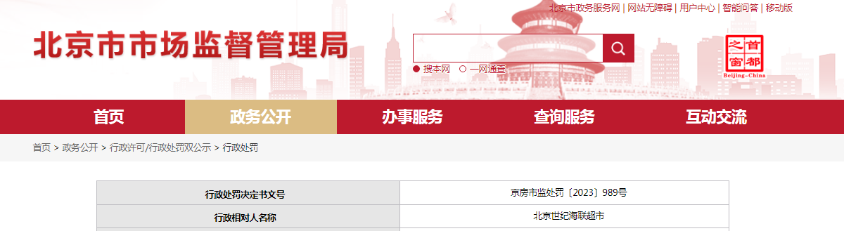 | 行政相對(duì)人名稱 | 北京世紀(jì)海聯(lián)超市 | |