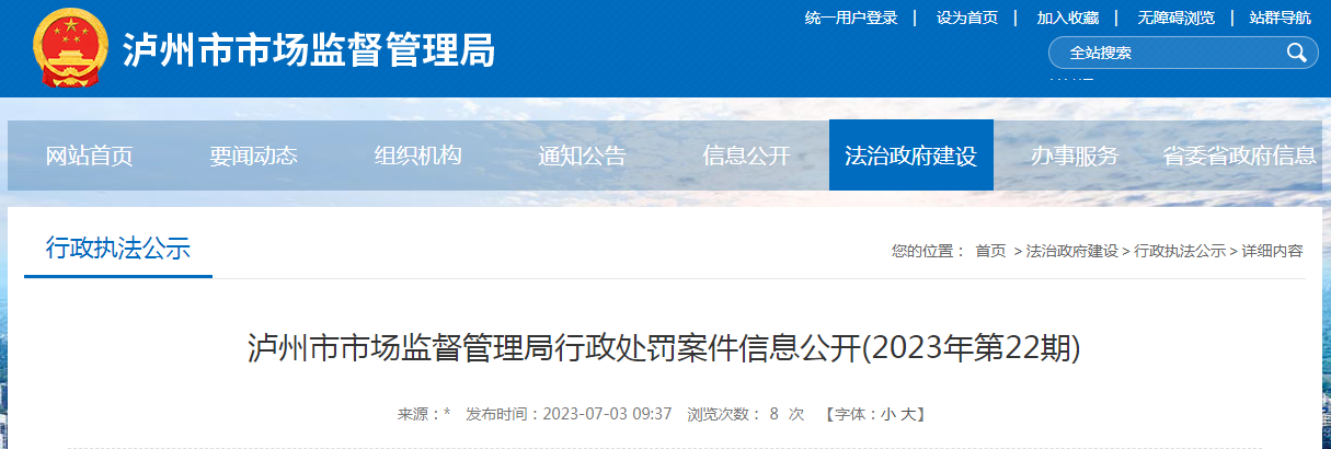 中國(guó)質(zhì)量新聞網(wǎng)訊 7月3日,四川省瀘州市市場(chǎng)監(jiān)督管理局網(wǎng)站公開(kāi)行政處罰案件信息(2023年第22期),涉及敘永縣張胖子餐飲服務(wù)有限責(zé)任公司經(jīng)營(yíng)感官性狀異常的食品案。