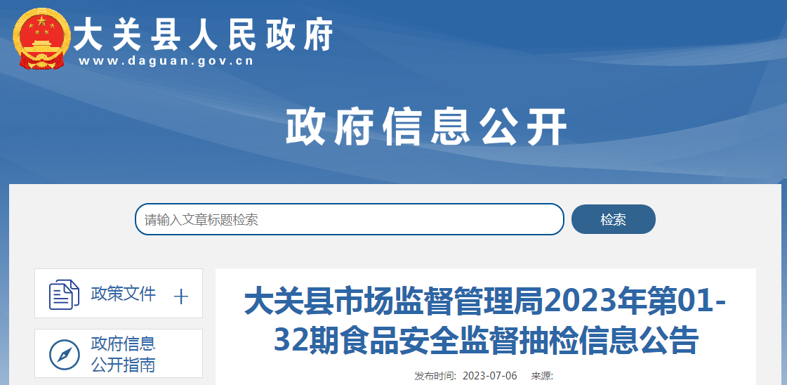 中國質(zhì)量新聞網(wǎng)訊 近日,云南省大關(guān)縣市場監(jiān)督管理局發(fā)布2023年第30期食品安全監(jiān)督抽檢信息。本期抽檢食用農(nóng)產(chǎn)品5批次,合格樣品5批次。