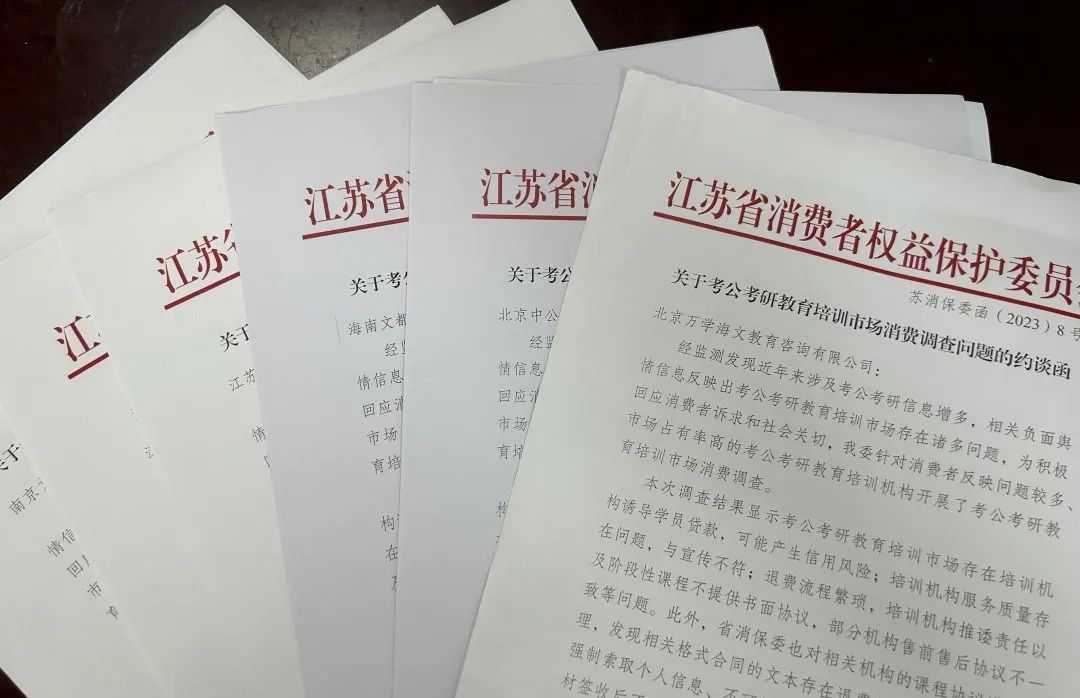 日前,省消保委結(jié)合考公考研教育培訓(xùn)市場消費(fèi)調(diào)查結(jié)果情況,對調(diào)查涉及的11家考公考研教育培訓(xùn)機(jī)構(gòu)開展線下約談。