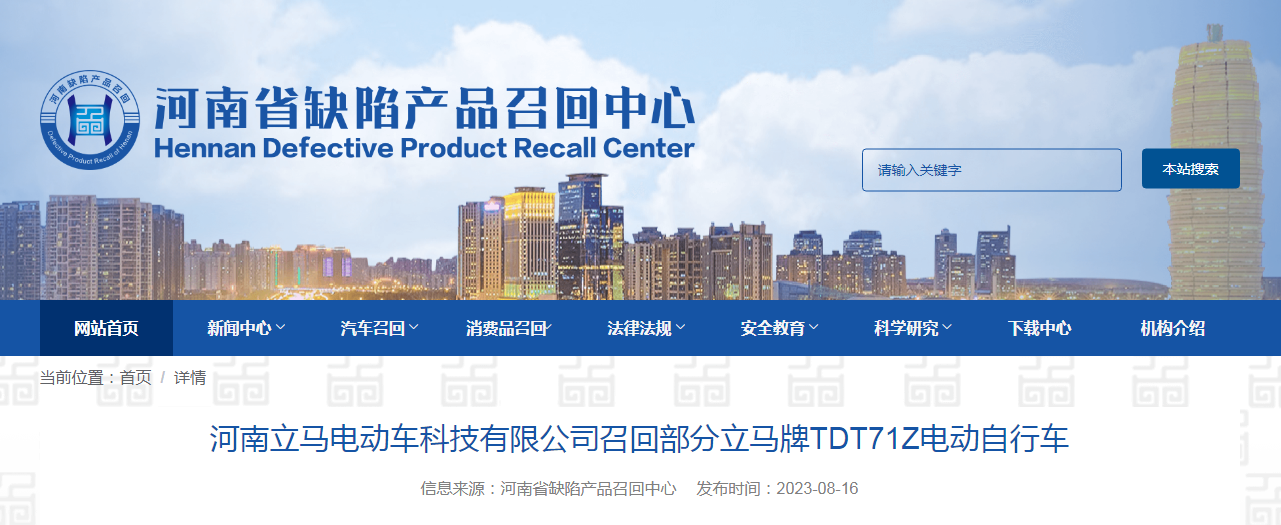 中國質(zhì)量新聞網(wǎng)訊 據(jù)河南省缺陷產(chǎn)品召回中心網(wǎng)站8月16日消息,日前,河南立馬電動車科技有限公司按照《消費品召回管理暫行規(guī)定》的要求,主動向河南省市場監(jiān)督管理局、駐馬店市市場監(jiān)督管理局報告了召回計劃,將自即日起,召回2022年9月13日制造的部分立馬牌電動自行車(型號/規(guī)格TDT71Z),涉及數(shù)量為12輛。
