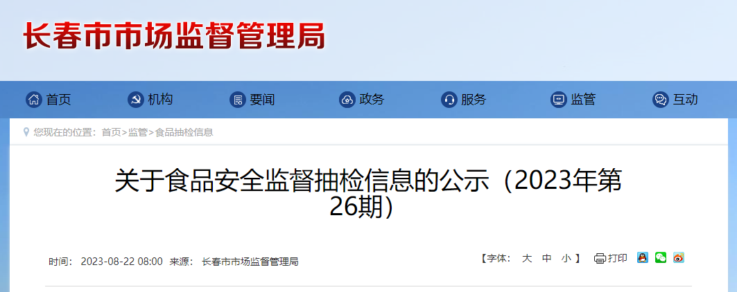 中國質(zhì)量新聞網(wǎng)訊 8月22日,長春市市場監(jiān)督管理局公示2023年第26期食品安全監(jiān)督抽檢信息。本期抽檢27類食品共1480批次樣品,詳見附件。