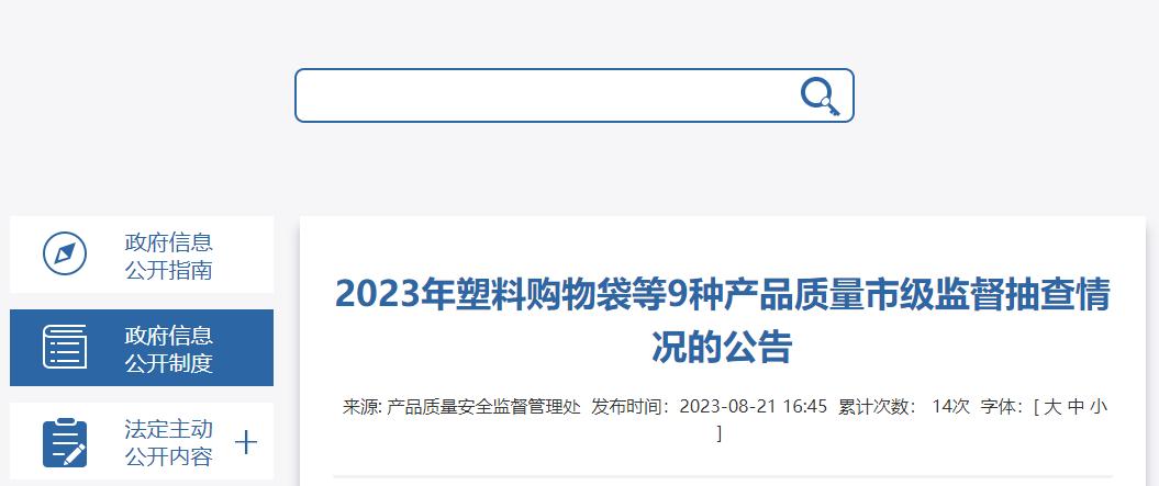中國(guó)質(zhì)量新聞網(wǎng)訊 8月21日,江蘇省南通市市場(chǎng)監(jiān)督管理局發(fā)布2023年塑料購(gòu)物袋等9種產(chǎn)品質(zhì)量市級(jí)監(jiān)督抽查情況。本次共抽查191批次產(chǎn)品,發(fā)現(xiàn)14批次產(chǎn)品不合格。詳情如下: