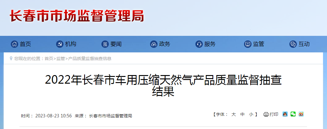 長(zhǎng)春市2022年車用壓縮天然氣產(chǎn)品質(zhì)量市監(jiān)督抽查結(jié)果公示