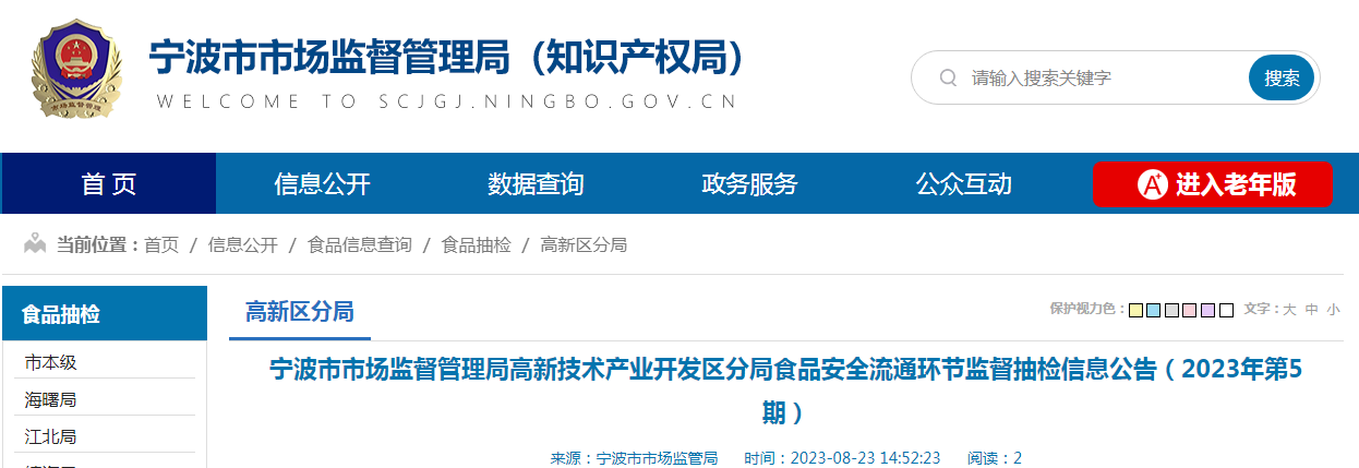 中國(guó)質(zhì)量新聞網(wǎng)訊 8月23日,浙江省寧波市市場(chǎng)監(jiān)督管理局高新技術(shù)產(chǎn)業(yè)開(kāi)發(fā)區(qū)分局發(fā)布食品安全流通環(huán)節(jié)監(jiān)督抽檢信息(2023年第5期)。本次監(jiān)督抽檢涉及9類(lèi)樣品,共抽檢32批次,均合格,合格率為100%。