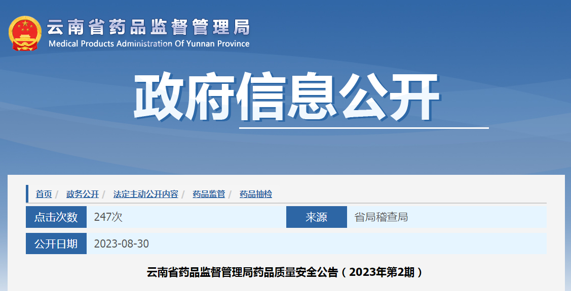 中國(guó)質(zhì)量新聞網(wǎng)訊 8月30日,云南省藥品監(jiān)督管理局網(wǎng)站發(fā)布藥品質(zhì)量安全公告(2023年第2期)。