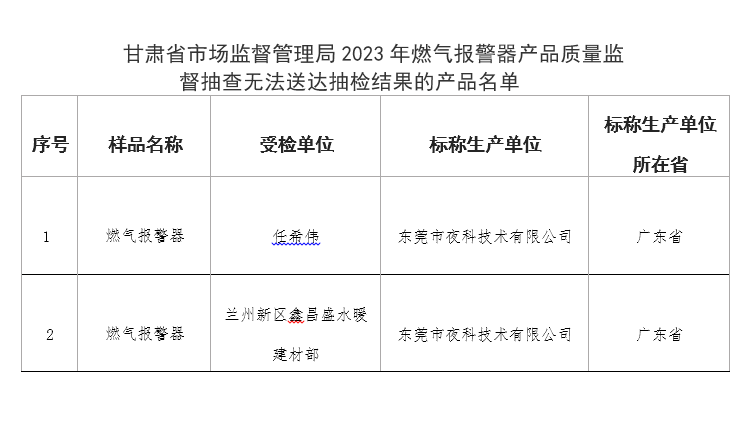 附件:甘肅省市場監(jiān)督管理局2023年燃?xì)鈭缶鳟a(chǎn)品質(zhì)量監(jiān)督抽查無法送達(dá)抽檢結(jié)果的產(chǎn)品名單