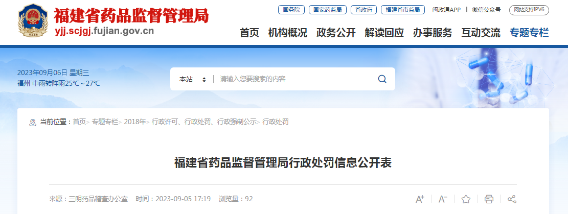 | 當事人應(yīng)當自收到本行政處罰決定書之日起十五日內(nèi),繳納上述罰沒款。當事人根據(jù)本辦開具的《福建省非稅收收入繳款通知書》,自行選擇繳款方式。到期不繳納罰款的,依據(jù)《中華人民共和國行政處罰法》第七十二條的規(guī)定,本辦將每日按罰款數(shù)額的百分之三加處罰款,并依法申請人民法院強制執(zhí)行。 | 福建省藥品監(jiān)督管理局三明藥品稽查辦公室 2023年5月10日 |