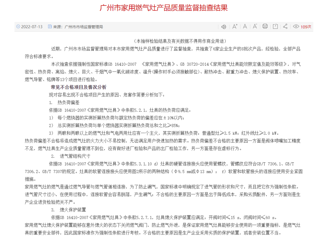01 家用燃?xì)庠町a(chǎn)品質(zhì)量監(jiān)督抽查結(jié)果