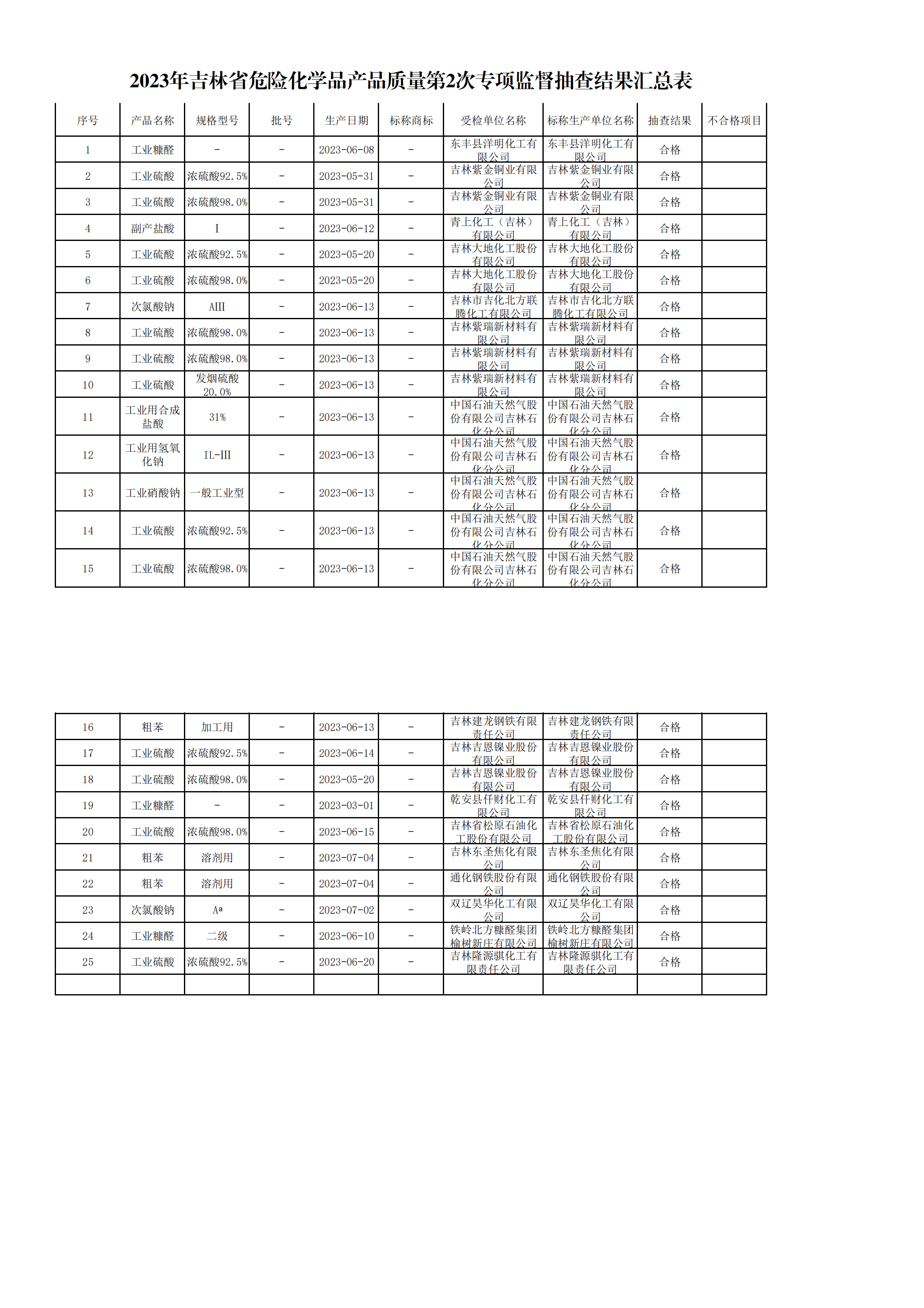 2023年吉林省危險(xiǎn)化學(xué)品產(chǎn)品質(zhì)量第2次專項(xiàng)監(jiān)督抽查結(jié)果匯總表.pdf