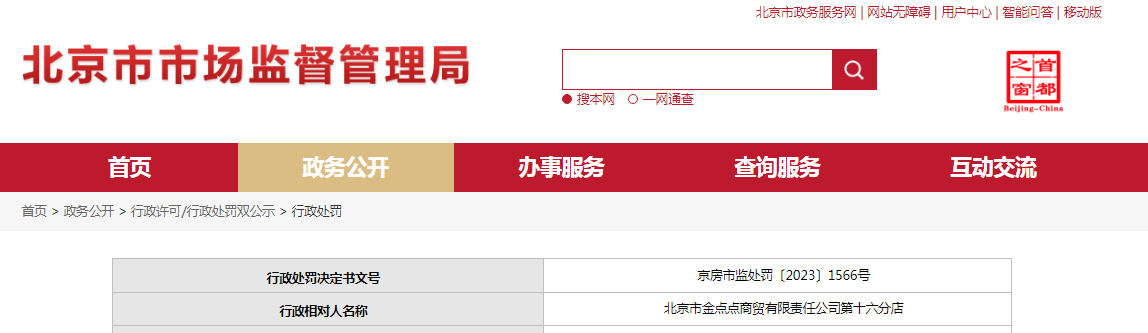 | 行政相對人名稱 | 北京市金點(diǎn)點(diǎn)商貿(mào)有限責(zé)任公司第十六分店 | |