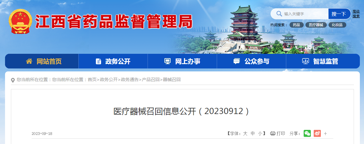 中國質量新聞網(wǎng)訊 9月18日,江西省藥監(jiān)局網(wǎng)站公開醫(yī)療器械召回信息(20230912),涉及江西維德醫(yī)療健康管理有限公司召回700件一次性醫(yī)用防護服。