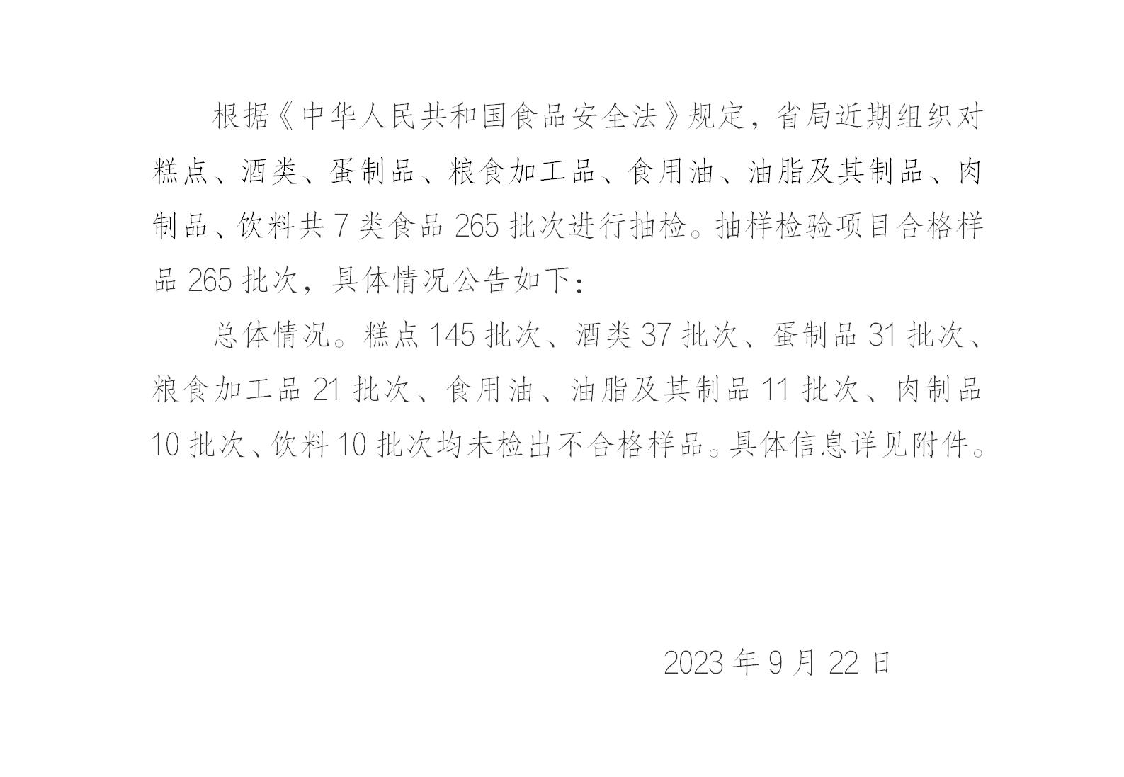中國(guó)質(zhì)量新聞網(wǎng)訊 9月22日,湖北省市場(chǎng)監(jiān)督管理局發(fā)布中秋、國(guó)慶兩節(jié)食品安全專項(xiàng)監(jiān)督抽檢信息(2023年第16期)。本期抽檢酒類、蛋制品、飲料等7類食品265批次樣品,合格樣品265批次。