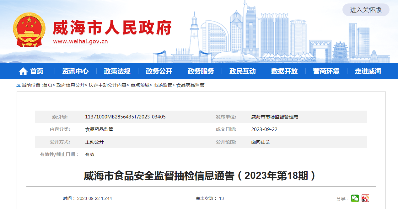 中國質量新聞網(wǎng)訊 9月22日,山東省威海市市場監(jiān)督管理局發(fā)布食品安全監(jiān)督抽檢信息通告(2023年第18期)。通告稱,中秋節(jié)臨近,該局組織食品生產、流通環(huán)節(jié)月餅專項抽檢,抽取糕點(月餅)29批次樣品,全部合格。檢驗機構為威海市食品藥品檢驗檢測研究院。