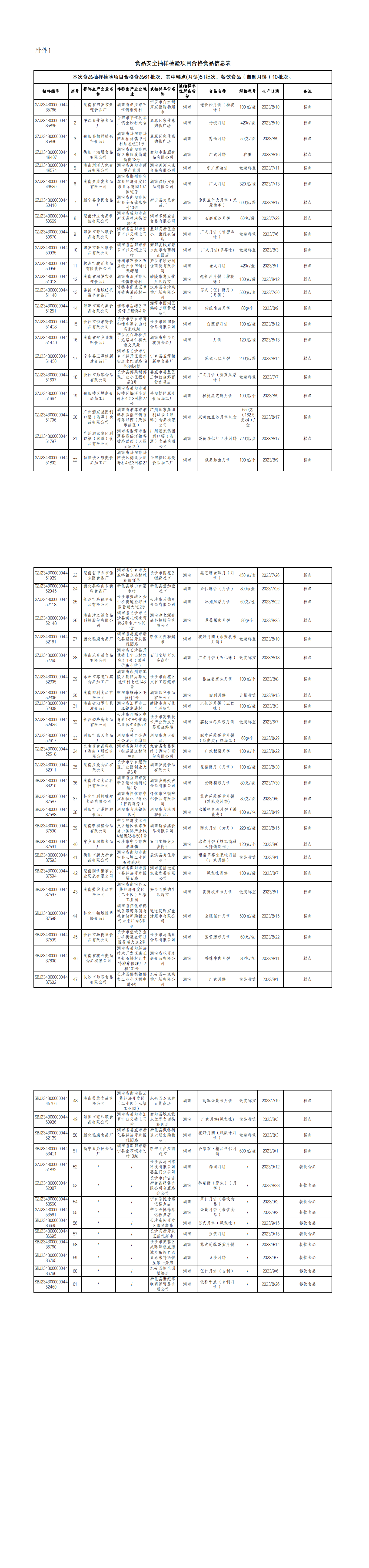 據(jù)通告,湖南省市場監(jiān)督管理局組織對糕點(diǎn)(月餅)、餐飲食品(自制月餅)等2大類食品61批次樣品開展了中秋節(jié)節(jié)令食品安全抽樣檢驗(yàn)。根據(jù)食品相關(guān)標(biāo)準(zhǔn)檢驗(yàn)和判定,61批次樣品抽樣檢驗(yàn)項(xiàng)目合格。