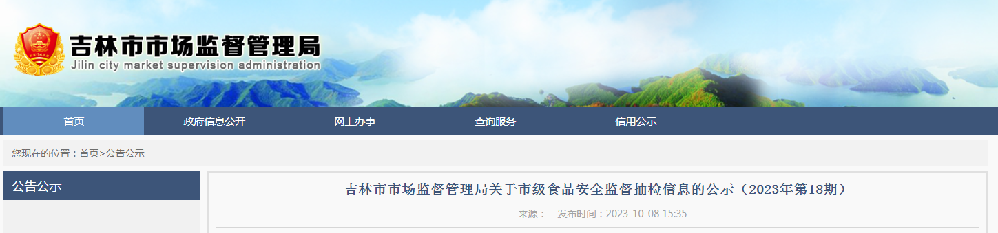 中國質量新聞網訊 10月8日,吉林省吉林市市場監(jiān)督管理局公示市級食品安全監(jiān)督抽檢信息(2023年第18期)。本期抽檢食用農產品64批次樣品,不合格樣品3批次。