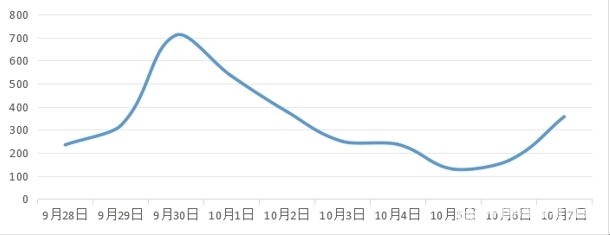 監(jiān)測(cè)期間,共收集交通出行類吐槽信息3569條,趨勢(shì)走向顯示網(wǎng)民在10月4日便開始籌劃返程,峰值出現(xiàn)在假期首尾兩端,“搶不到票”“超額賣票”等話題引發(fā)波動(dòng)。