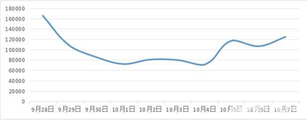 在9月28日至10月7日共計(jì)10天監(jiān)測(cè)期內(nèi),共收集到“消費(fèi)維權(quán)”相關(guān)信息1002207條,日均約10萬(wàn)條。輿情走勢(shì)平穩(wěn),9月28日信息量達(dá)到峰值,為165629條。10月5日、7日出現(xiàn)小幅增長(zhǎng)。