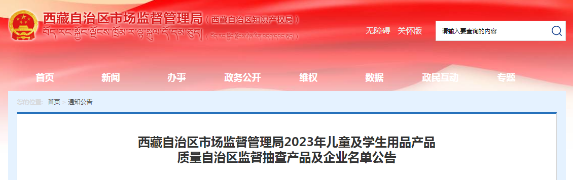 中國質(zhì)量新聞網(wǎng)訊 據(jù)西藏自治區(qū)市場監(jiān)督管理局網(wǎng)站11月8日消息,根據(jù)《中華人民共和國產(chǎn)品質(zhì)量法》規(guī)定,2023年,該局組織開展了兒童及學(xué)生用品產(chǎn)品質(zhì)量監(jiān)督抽查,現(xiàn)將抽查產(chǎn)品及企業(yè)名單予以公布。