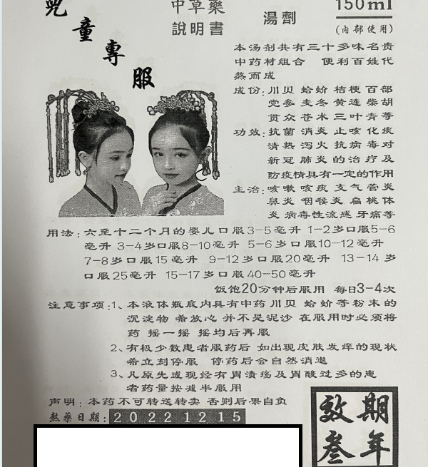 為一探究竟,執(zhí)法人員自費(fèi)購買了這種中草藥湯劑。該“神藥”說明書宣稱為純中藥,由“川貝、蛤蚧、桔梗、百部、三葉青、黨參、麥冬、黃蓮、柴胡、蒼術(shù)”等三十多味名貴中藥材熬制而成,具有治療咳嗽、支氣管炎、咽喉炎、扁桃體炎等多種功效。經(jīng)進(jìn)一步檢測(cè),該藥中含有止咳類西藥成分。
