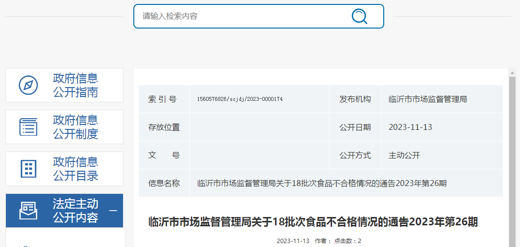 中國質(zhì)量新聞網(wǎng)訊 11月13日,山東省臨沂市市場(chǎng)監(jiān)督管理局發(fā)布關(guān)于18批次食品不合格情況的通告(2023年第26期)。
