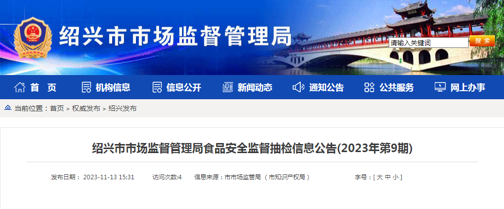 中國(guó)質(zhì)量新聞網(wǎng)訊 11月13日,浙江省紹興市市場(chǎng)監(jiān)督管理局發(fā)布2023年第9期食品安全監(jiān)督抽檢信息。本期抽檢糧食加工品、調(diào)味品、肉制品、飲料、方便食品、速凍食品、薯類和膨化食品、酒類、炒貨食品及堅(jiān)果制品、糕點(diǎn)、豆制品、保健食品、餐飲食品、食用農(nóng)產(chǎn)品等14類食品178批次樣品。根據(jù)食品安全國(guó)家標(biāo)準(zhǔn)檢驗(yàn)和判定:抽樣檢驗(yàn)合格171批次、不合格7批次。不合格項(xiàng)目涉及農(nóng)獸藥殘留超標(biāo)。檢驗(yàn)機(jī)構(gòu)為紹興市食品藥品檢驗(yàn)研究院。具體情況如下: