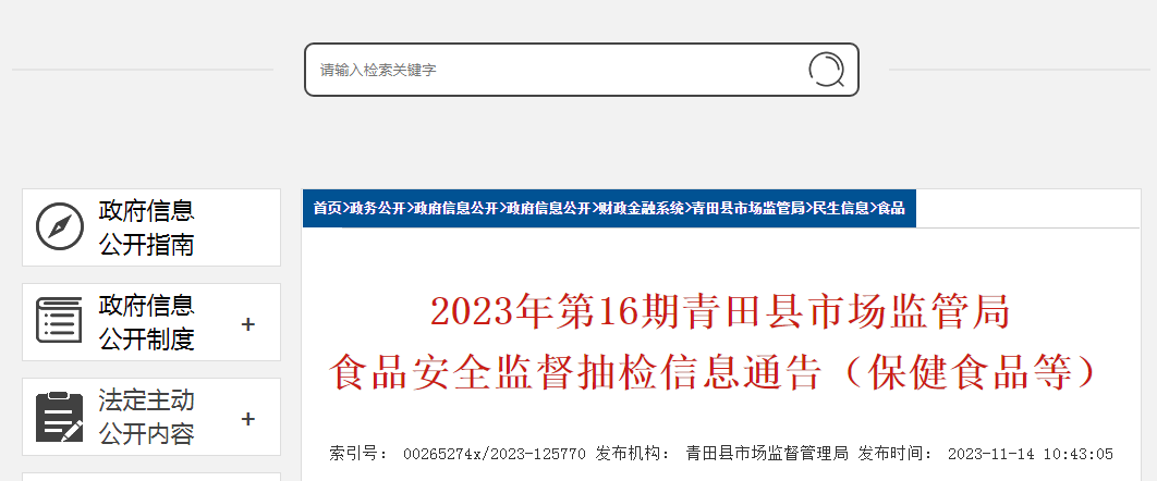 中國質(zhì)量新聞網(wǎng)訊 近日,浙江省青田縣市場監(jiān)督管理局發(fā)布2023年第16期食品安全監(jiān)督抽檢信息(保健食品等)。