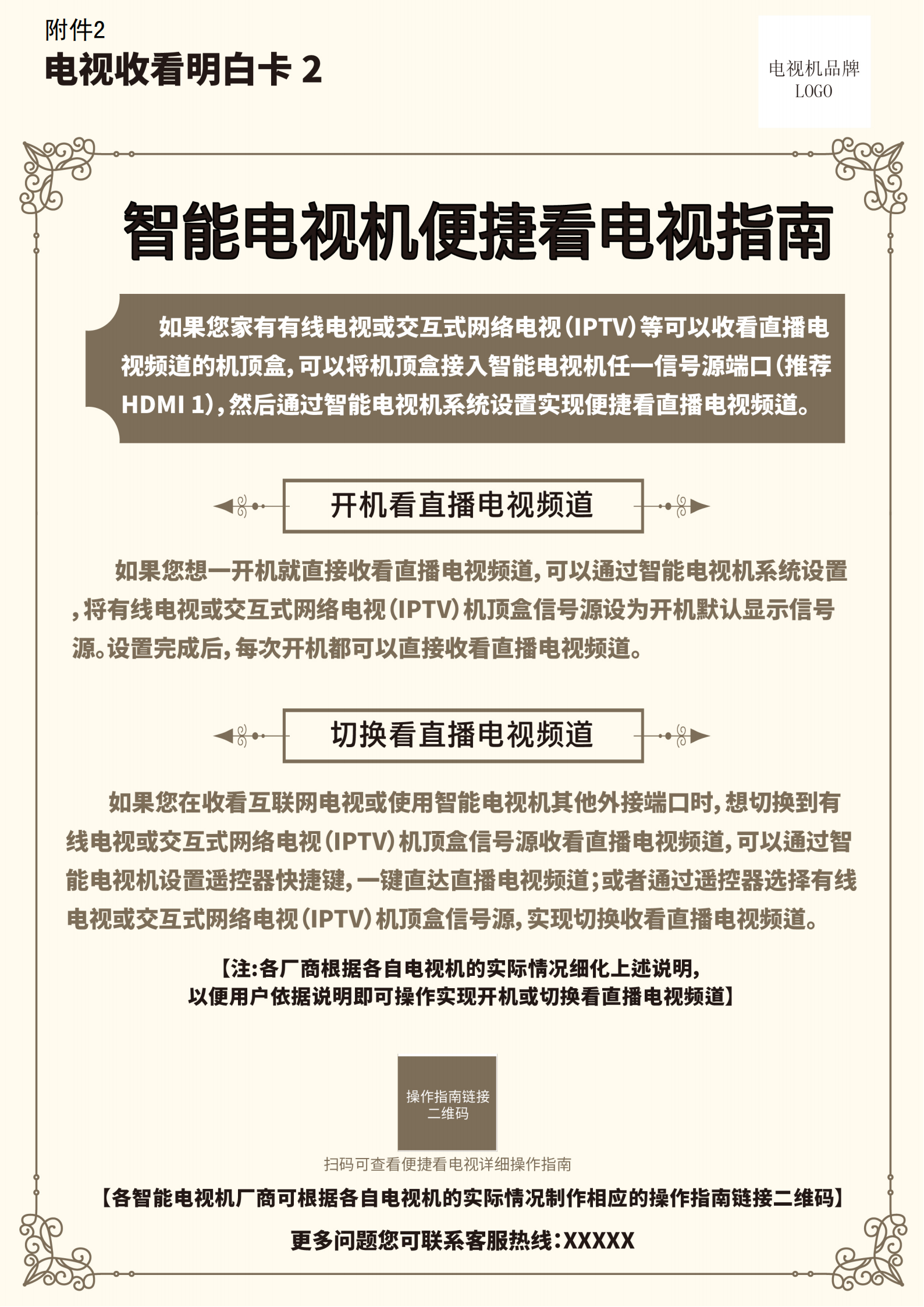 根據(jù)治理電視“套娃”收費(fèi)和操作復(fù)雜工作部署要求,國(guó)家廣播電視總局、工業(yè)和信息化部、國(guó)家市場(chǎng)監(jiān)督管理總局、中國(guó)消費(fèi)者協(xié)會(huì)決定開展電視收看“明白卡”提示工作。自2023年11月起,各電視機(jī)生產(chǎn)廠商要將制作完成的《電視收看“明白卡”》裝入電視機(jī)包裝箱內(nèi)的說(shuō)明材料中,同時(shí)在電商銷售頁(yè)面、線下實(shí)體銷售和廠商入戶安裝電視機(jī)過程中,將“明白卡”內(nèi)容向用戶明確展示,并告知用戶只有開通有線電視或IPTV方可收看電視直播頻道節(jié)目。